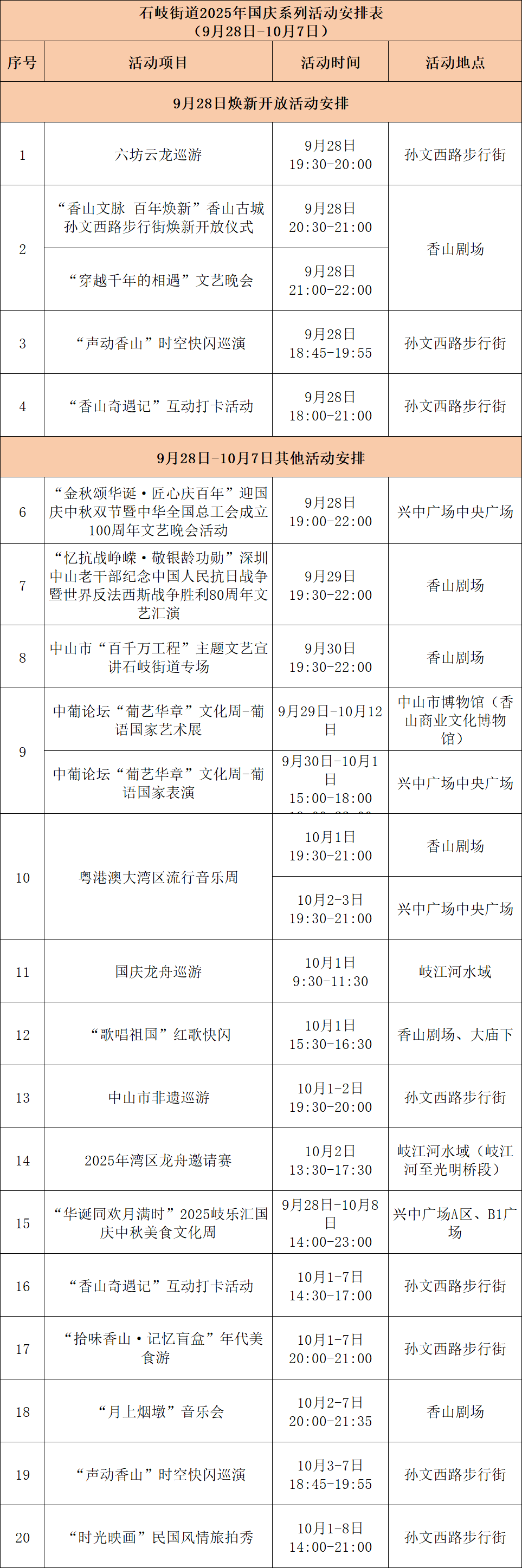 10月1-7日,孙文西路步行街及兴中广场将联合举办“香山文脉 百年焕新”2025中山市国庆中秋美食文化周。